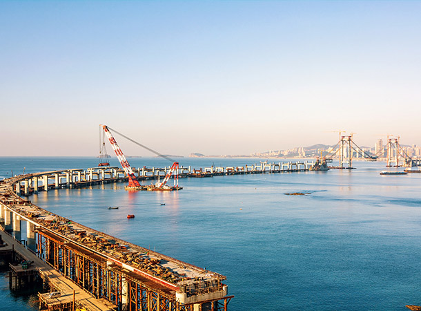 海洋工程是指以開發、利用、保護、恢復海洋資源為目的,并且工程主體位于海岸線向海一側的新建、改建、擴建工程。一般認為海洋工程的主要內容可分為資源開發技術與裝備設施技術兩大部分,具體包括:圍填海、海上堤壩工程,人工島、海上和海底物資儲藏設施、跨海橋梁、海底隧道工程,海底管道、海底電(光)纜工程,海洋礦產資源勘探開發及其附屬工程,海上潮汐電站、波浪電站、溫差電站等海洋能源開發利用工程,大型海水養殖場、人工魚礁工程,鹽田、海水淡化等海水綜合利用工程,海上娛樂及運動、景觀開發工程。